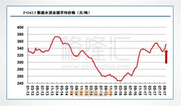 全國有20個省市自治區的P.O42.5散裝水泥價格環比上漲,水泥價格也正式步入新一波的升軌(上圖紅箭頭所示)。