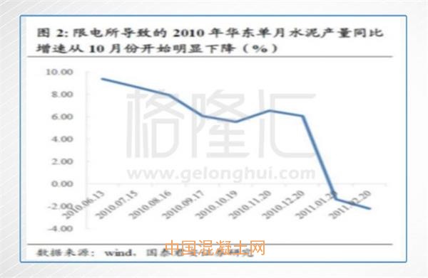 2010年7月至年底,為了完成當時“十一五”的節能減排目標,各地陸續發布措施以應對節能減排的考核,拉閘限電是最重要的行政手段。水泥作為耗電的大戶,自然也就成為拉閘首當其沖的行業之一。其中,華東地區是被限電的最主要區域。上圖是2010年華東區的熟料產量數據,可以看到限電期間產量增速下滑明顯。