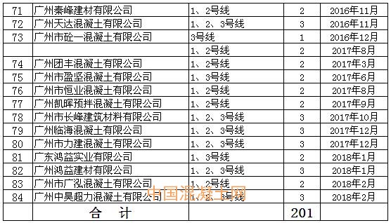 2018年2月2日,廣州市混凝土行業(yè)協(xié)會(huì)公布廣州市預(yù)拌混凝土行業(yè)已安裝“混凝土生產(chǎn)信息自動(dòng)采集系統(tǒng)”的企業(yè)和生產(chǎn)線(xiàn)名單,具體名單如下: