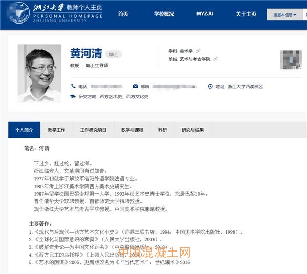 經查,黃河清是浙大藝術與考古學元教授,博導,有多部著作。