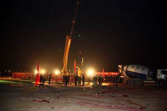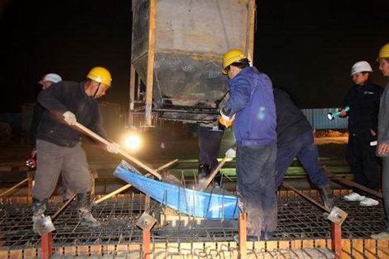 4月3日晚,在震耳的鞭炮聲中,中鐵十五局施工人員將C50混凝土緩緩灌入梁臺(tái)鋼模內(nèi),經(jīng)過4個(gè)多小時(shí)的精細(xì)操作,中國鐵建中鐵十五局集團(tuán)五公司西銅高速4標(biāo)段首片箱梁澆注成功。
