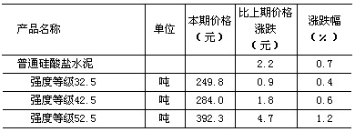 統(tǒng)計數(shù)據(jù)顯示,9月10日,普通硅酸鹽水泥價格較8月20日上漲2.2元/噸,漲幅為0.7%。
