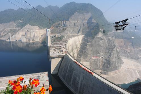 2004年8月4日,以水電八局有限公司和水電九局有限公司組建的八九聯(lián)營體中標(biāo)大壩主體工程,承建大壩建筑與金屬結(jié)構(gòu)設(shè)備安裝工程施工及合同內(nèi)外新增項目。9月8日,大壩工程正式開工建設(shè),同年11月16日實現(xiàn)大江截流。2005年10月17日開始澆筑大壩混凝土。施工中,八九聯(lián)營體克服了百年不遇的特大冰雪災(zāi)害,順利實現(xiàn)1號、3號導(dǎo)流洞下閘目標(biāo)。2009年6月8日,底孔下閘,水庫開始蓄水。7月31日,首臺機組正式投產(chǎn)發(fā)電。