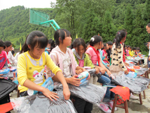 中聯(lián)重科混凝土機械公司2011年“暢享中聯(lián)快樂行”夏令營正式啟動 中聯(lián)重科混凝土機械公司為下飼小學(xué)學(xué)生贈送的書包和文具