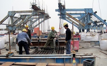 西銅高速4標(biāo)渭河特大橋全長4.96 公里,其主橋連續(xù)梁及剛構(gòu)施工是制約總工期的關(guān)鍵。為保證合龍段施工優(yōu)質(zhì)、安全、順利進(jìn)行,項目部積極克服由于設(shè)計變更造成本標(biāo)段尤其是渭河特大橋主橋連續(xù)懸臂梁及剛構(gòu)段施工滯后的不利因素,層層下發(fā)安全、質(zhì)量技術(shù)交底,對吊架進(jìn)行安全隱患排查,并進(jìn)行了二次加固進(jìn)行安全防護(hù)。項目部領(lǐng)導(dǎo)帶領(lǐng)技術(shù)人員經(jīng)過多次研討和仔細(xì)驗算,最終確定了配重方案和配重位置,并請來監(jiān)控方長安大學(xué)對合龍口的標(biāo)高進(jìn)行認(rèn)真復(fù)核,經(jīng)與模型對照和測算滿足合龍標(biāo)高精度要求時才實施合龍施工。考慮到合龍段預(yù)應(yīng)力受溫度影響較大,項目部還提前一周對溫度進(jìn)行連續(xù)監(jiān)測,確定了合龍的最佳時間。