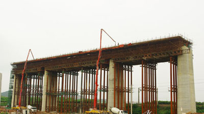 5月2日上午,中鐵四局二公司機(jī)管中心泵車(chē)正在局杭(州)長(zhǎng)(沙)鐵路客運(yùn)專(zhuān)線(xiàn)義金特大橋工地上澆筑現(xiàn)澆梁高性能混凝土。該現(xiàn)澆梁是義金特大橋最大的現(xiàn)澆梁,全長(zhǎng)113米,需一次性澆筑混凝土1334立方。為確保混凝土供應(yīng)的連續(xù)性,5月1日,該中心精心安排,合理組織,上足了人力和機(jī)械設(shè)備,克服了混凝土供應(yīng)運(yùn)輸距離遠(yuǎn),僅用43小時(shí)完成了全部混凝土供應(yīng)施工任務(wù)。