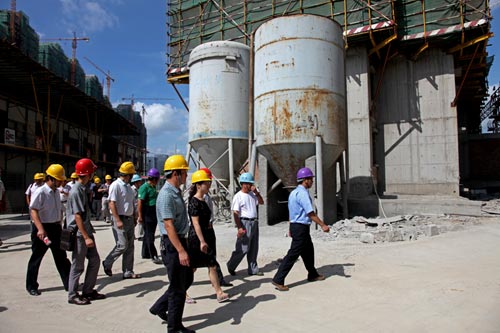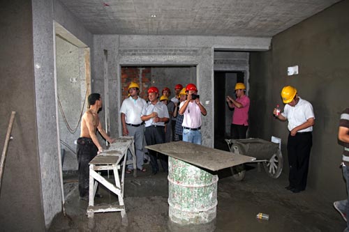 參觀中國核工業華興建設有限公司承建的“中環紫郡”建設工地使用預拌砂漿現場