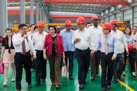 在政企推動(dòng)和各方努力下,湖南省政府落實(shí)“優(yōu)化對(duì)外貿(mào)易結(jié)構(gòu),加快實(shí)施走出去戰(zhàn)略”又有了新成果。6月24日,蘇里南共和國(guó)總統(tǒng)鮑特瑟攜近80人的政務(wù)與商務(wù)團(tuán)隊(duì)來(lái)到中國(guó)住宅產(chǎn)業(yè)化龍頭企業(yè)、綠色建筑制造商——遠(yuǎn)大住宅工業(yè)有限公司(簡(jiǎn)稱遠(yuǎn)大住工),對(duì)工業(yè)化方式造房的全流程以及工業(yè)化式建造的住房產(chǎn)品進(jìn)行了實(shí)地考察,表示希望遠(yuǎn)大住工盡快登陸蘇里南,推動(dòng)蘇里南保障房項(xiàng)目建設(shè)。中國(guó)駐蘇里南大使楊子剛、外交部拉美司參贊王衛(wèi)、湖南省副省長(zhǎng)何報(bào)翔、長(zhǎng)沙市委副市長(zhǎng)張迎春、遠(yuǎn)大住工董事長(zhǎng)張劍等陪同參觀考察。當(dāng)天考察遠(yuǎn)大住工前,鮑特瑟總統(tǒng)一行抵達(dá)湖南省雜交水稻研究中心,與“雜交水稻之父”袁隆平座談交流,向袁隆平請(qǐng)教雜交水稻種植經(jīng)驗(yàn)。