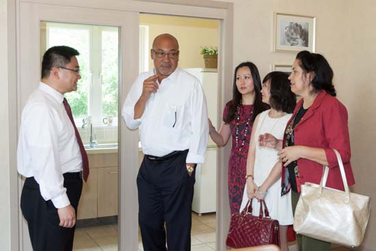 在麓谷展廳會(huì)議室,總統(tǒng)鮑特瑟表示這是第二次和張劍見(jiàn)面,“對(duì)遠(yuǎn)大住工在蘇里南的項(xiàng)目印象深刻,現(xiàn)代化工廠凸顯技術(shù)優(yōu)勢(shì),工業(yè)化建筑技術(shù)非常棒,遠(yuǎn)大住工的展示和介紹詳細(xì)清楚。”隨后,鮑特瑟總統(tǒng)一行參觀了遠(yuǎn)大住工別墅展示中心,不同風(fēng)格的各式別墅給訪問(wèn)團(tuán)留下深刻印象。別墅展區(qū)維多利亞英式別墅吸引了蘇里南總統(tǒng)及夫人英格麗德·鮑特塞的極大興趣,希望能把類似風(fēng)格的別墅“搬到”蘇里南。鮑特瑟總統(tǒng)一行還參觀了風(fēng)格簡(jiǎn)約的北歐風(fēng)格別墅。11點(diǎn)55分,鮑特瑟總統(tǒng)一行結(jié)束對(duì)遠(yuǎn)大住工實(shí)地考察,返回酒店。